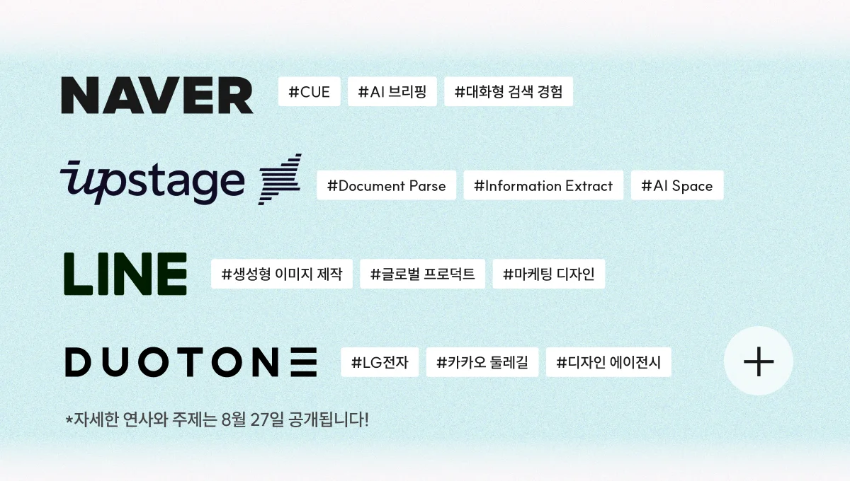 (자세한 연사와 주제는 8/27 공개될 예정입니다)