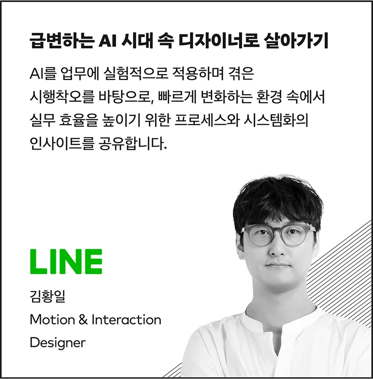 AI 디자인 콘퍼런스 OPEN SQUARE 2025에 연사로 서는 LINE ABC STUDIO 김황일 디자이너를 직접 만나 빠르게 변화하는 환경 속 AI를 실무에 효과적으로 적용하기 위해 노력했던 경험과 인사이트를 물었습니다.