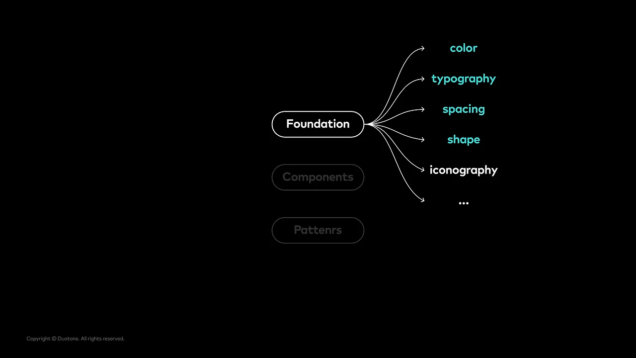 UI Library는 크게 components, patterns, foundation으로 세분화할 수 있습니다. 이 요소들이 디자인 시스템에서 흔히 말하는 ‘디자인 토큰 Design Token’과 가장 관련이 깊은 부분입니다.